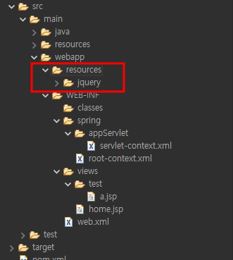 <!-- Spring에서 resources 경로 지정시 주소창을 기준으로 상대경로 지정