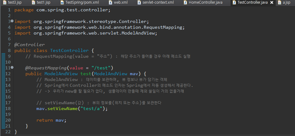 TestController.java 의 일부 (밑에 전체 코드 붙여놓을거임)