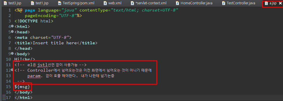 주소는 test인데, jsp는 a.jsp잖앙, 주소랑 화면을 같이 보면 안됨, 주소 들어오면 메소드실행