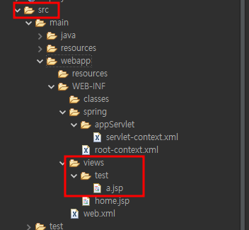 우리는 TestController에서 저렇게만 위치를 지정했는데 어떻게 a.jsp까지의 경로까지 가는가 하면