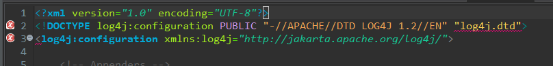 log4j.xml에 <!DOCTYPE ~~ 부분을 위에처럼 바꿔줌