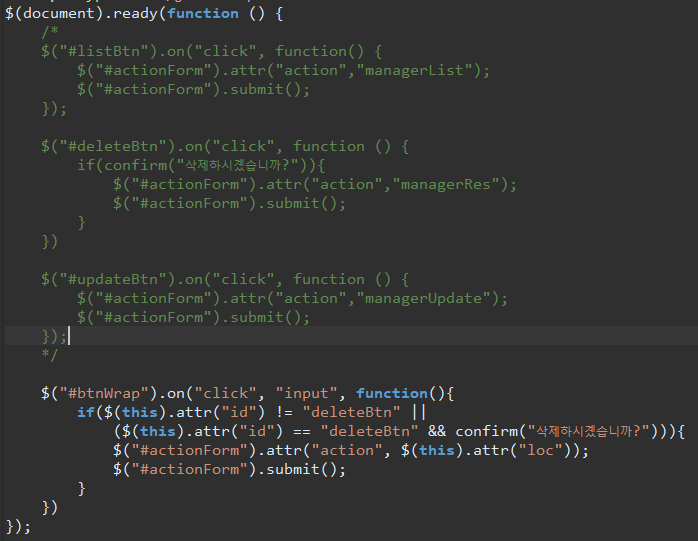 어제 manager 수정, 삭제기능 추가할때