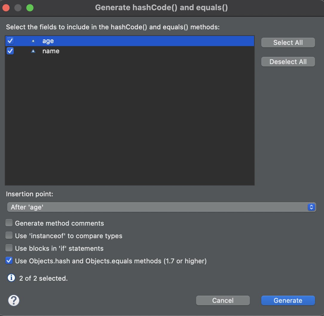 return Objects.hash(age, name); //iv들을 다 적으면 된다