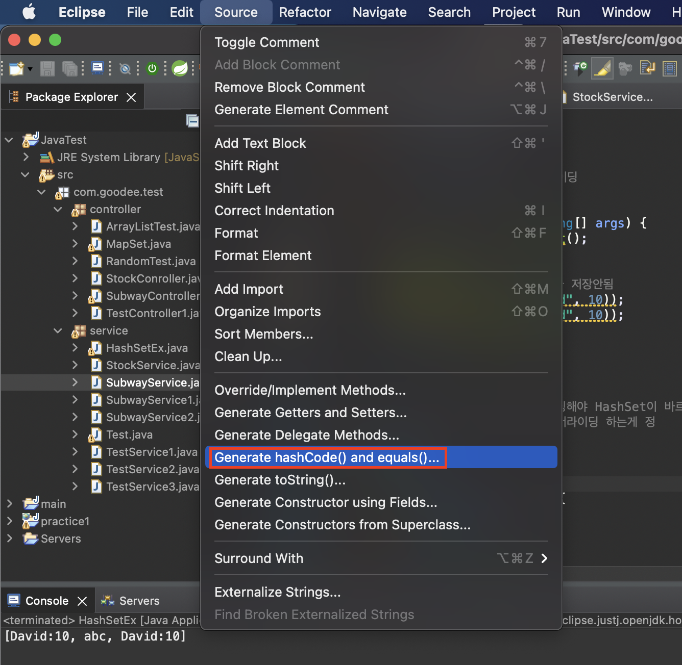 이클립스 Source → Generate hashCode() and equals()