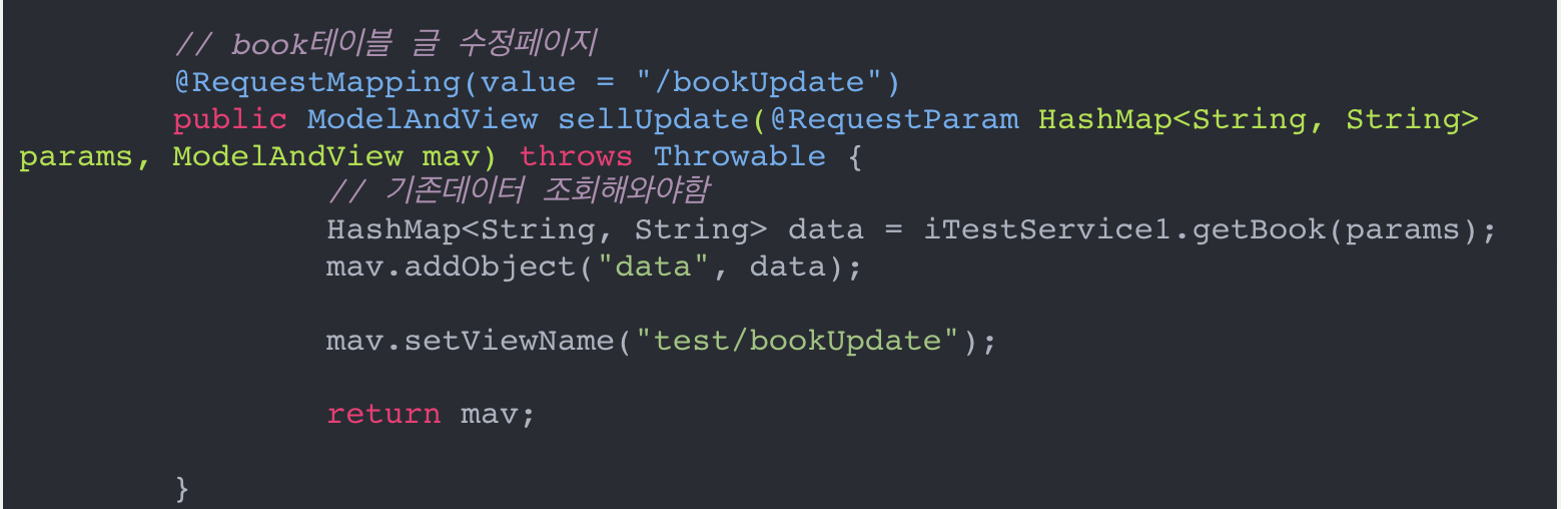 왜 bookUpdate부분에 public ModelAndView sellUpdate.... sell이 왜있어!