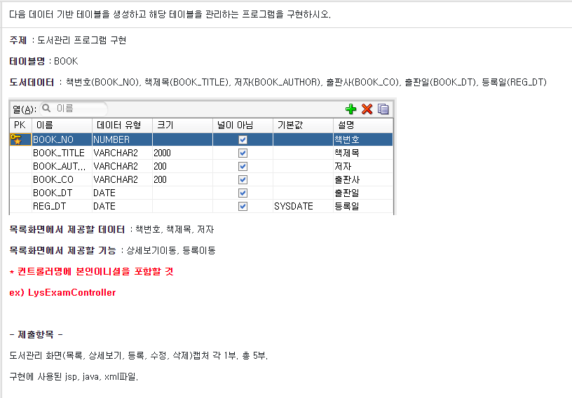 오라클에 BOOK 테이블을 만들고,