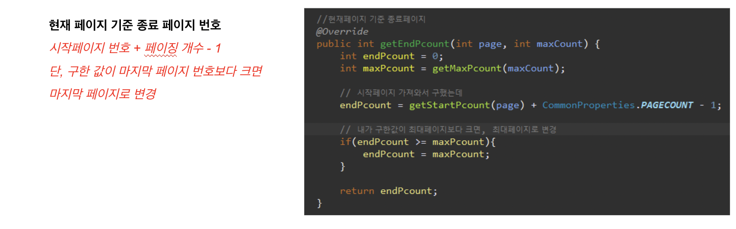 // 현재페이지 기준 종료페이지