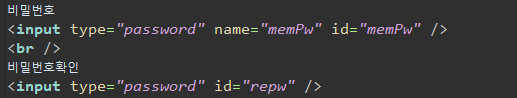<input type="password" name="memPw" id="memPw" />