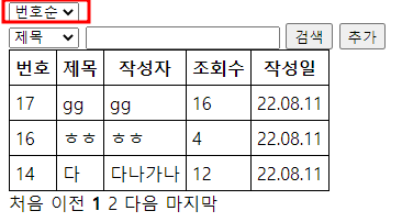 <option value="0">번호순</option>