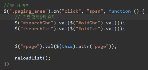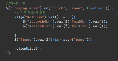 // 이동을 안하다보니 문제가 기존검색값 셋팅을 안해줌