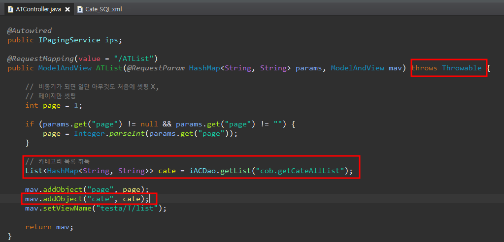 public ModelAndView ATList(@RequestParam HashMap<String, String> params, ModelAndView mav) throws Throwable {
