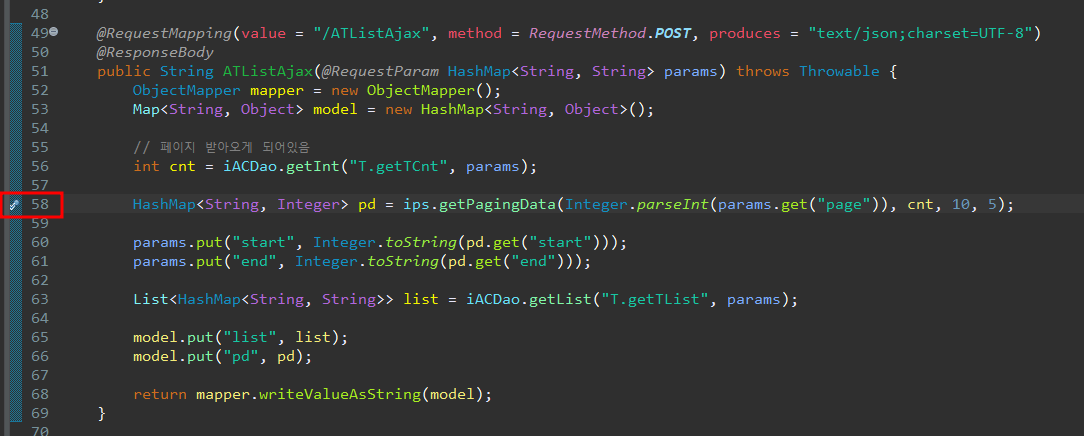 브레이크 포인트가 있다 -> 여기서 멈추겠다