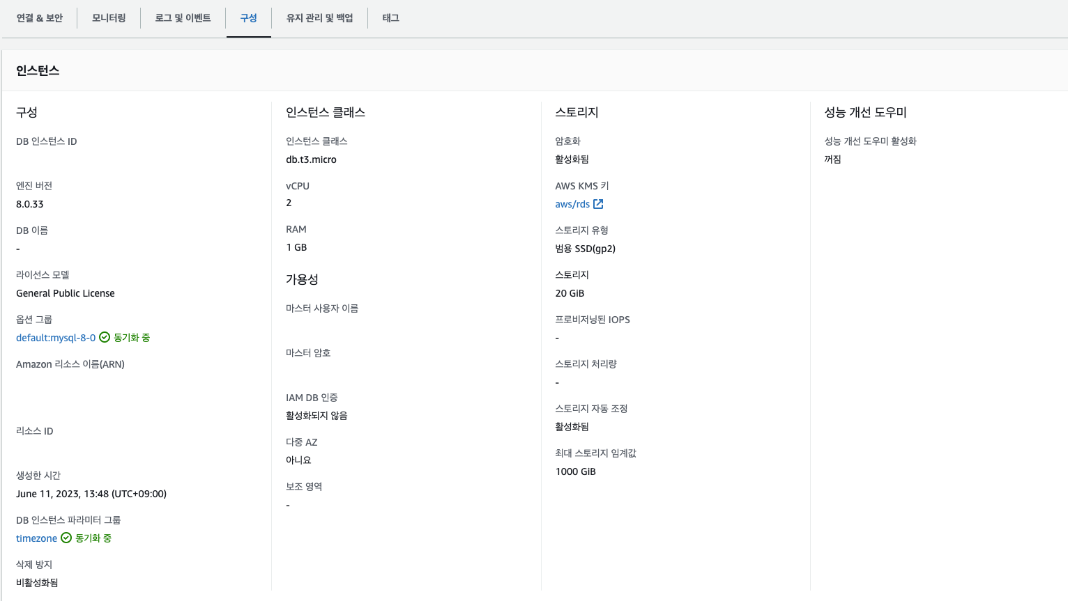 DB 인스턴스 파라미터 그룹에 아까 생성한 파라미터 그룹 옆에 ✔️동기화 중 이렇게 떠 있음 변경 완료된거다
