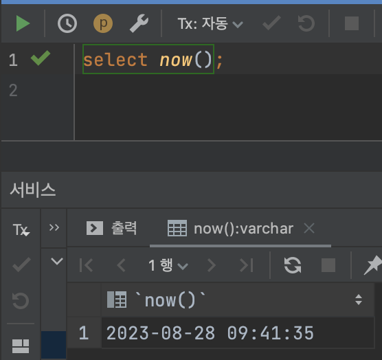 select now(); 해서 현재 시간을 확인하면 시간이 잘 뜨는 것을 확인할 수 있다
