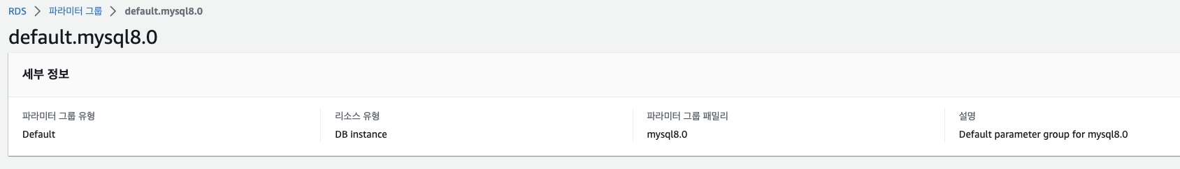 파라미터 그룹 패밀리에 있는 값을 선택하면 된다 (mysql8.0)