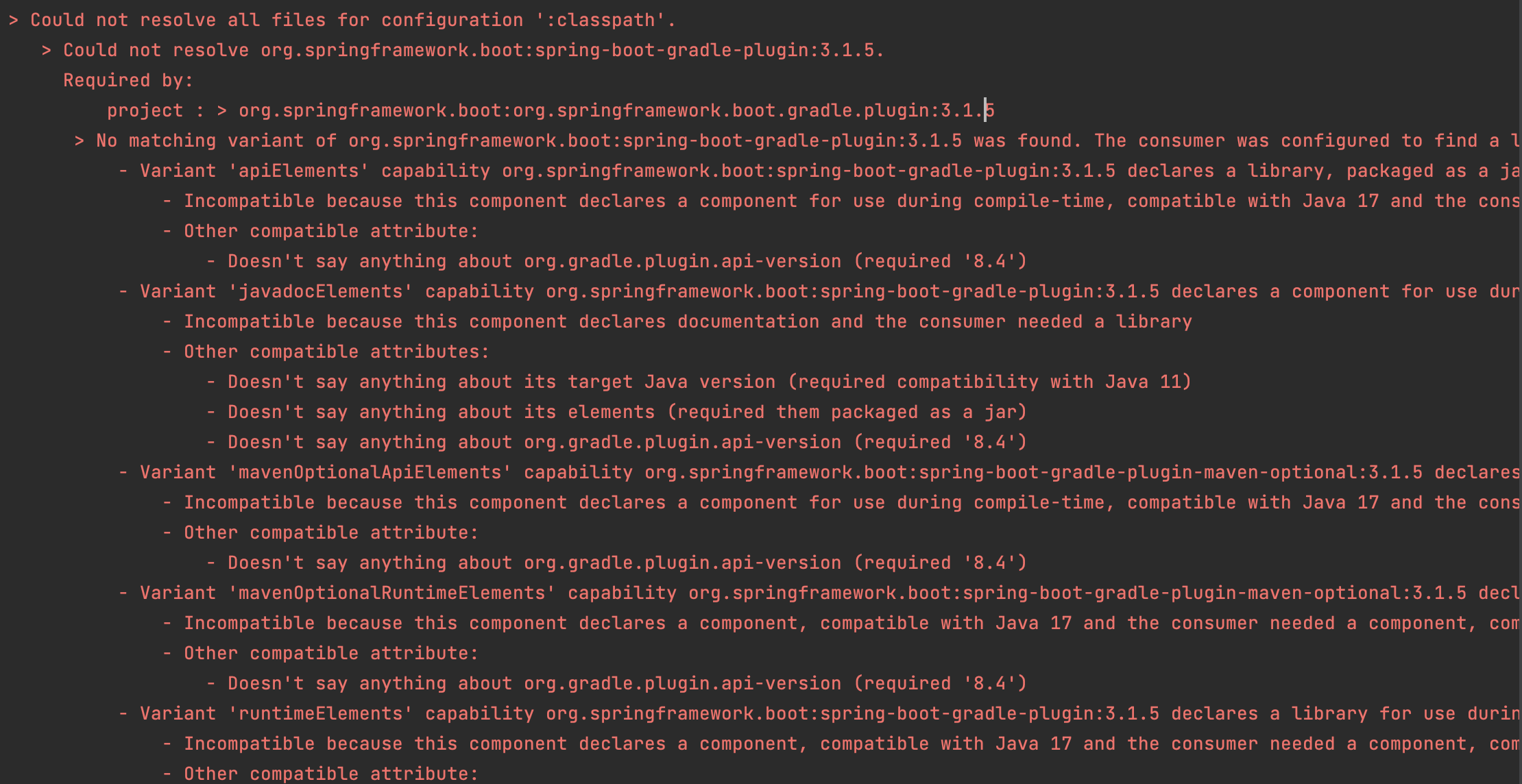 No matching variant of org.springframework.boot:spring-boot-gradle-plugin:3.1.5 was found