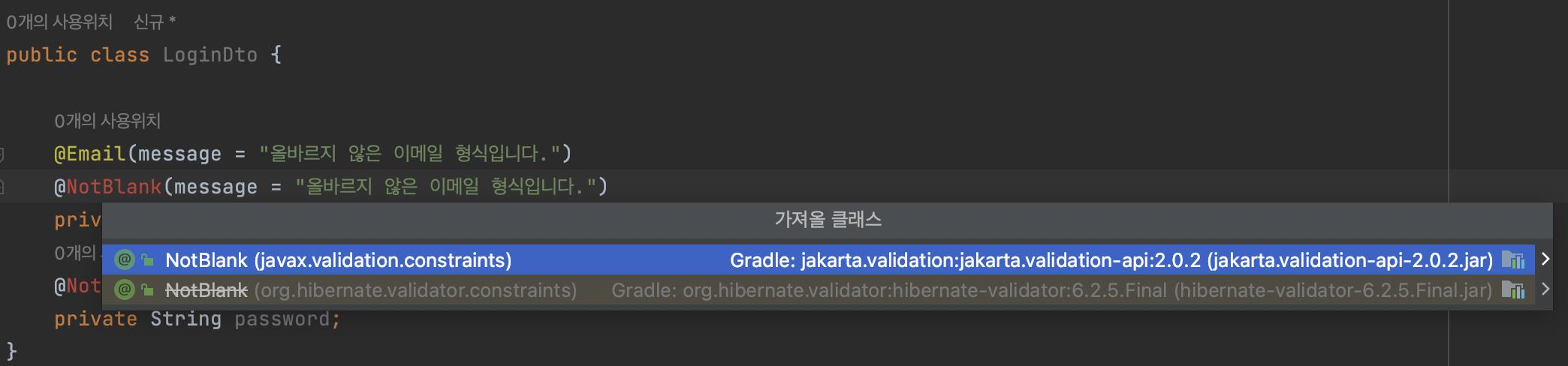 DTO에서 유효성 검사를 하고 싶을때 spring-boot-starter-validation 를 추가해준다