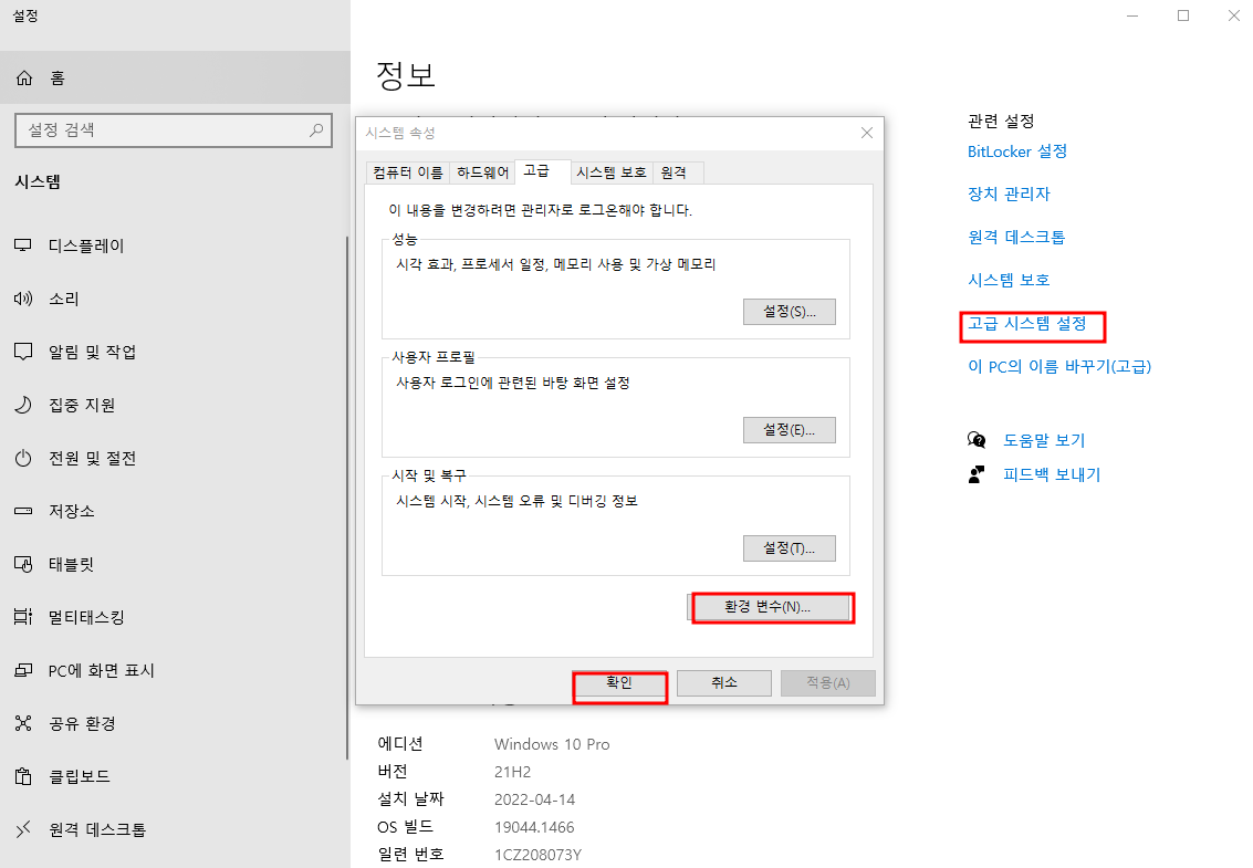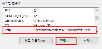 근디 아무데서나 할수있게 환경변수 설정해주기! path
