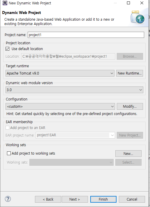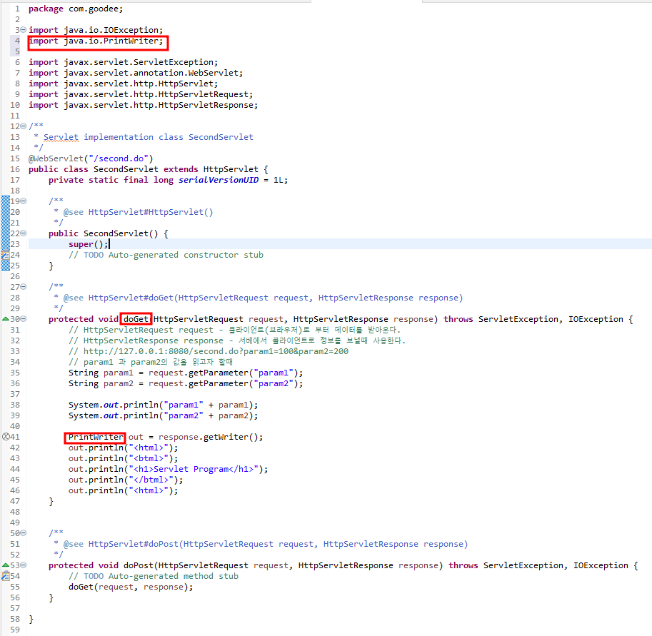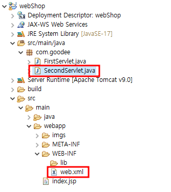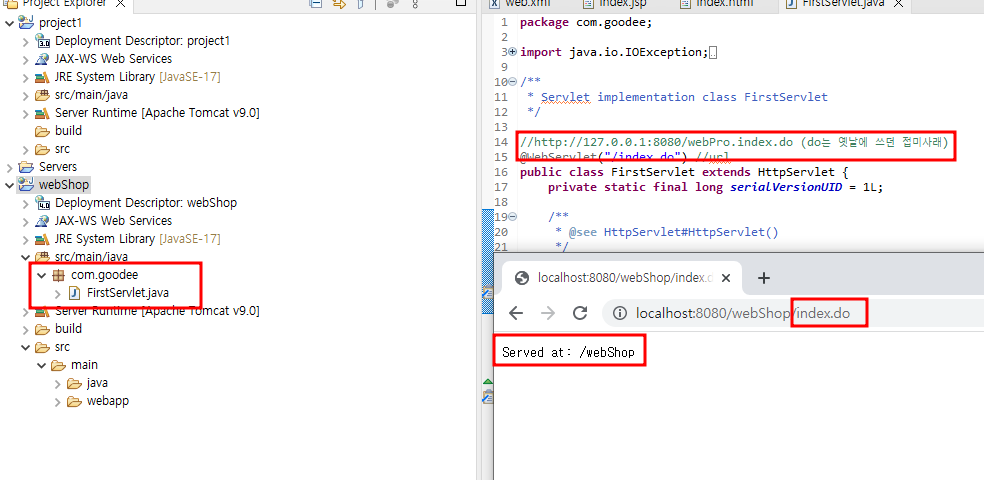 이 부분이 맵핑임(톰캣6.0버전부터), 이 부분을 주석하고 옛날 방식대로(톰캣5.0) 해보면, web.xml 파일에서 밑에처럼 쳐주면 됨, 자바웹을 다루는 기술 책 p157