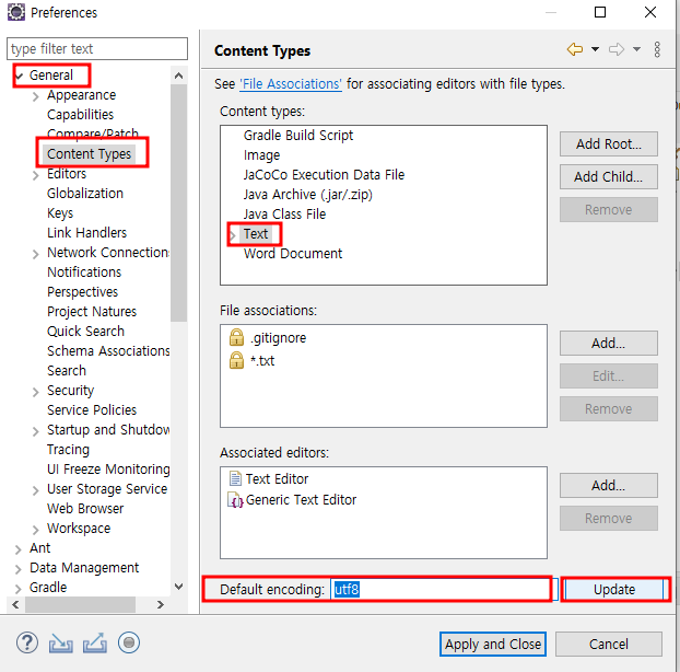 글자 설정 window -> preferences
