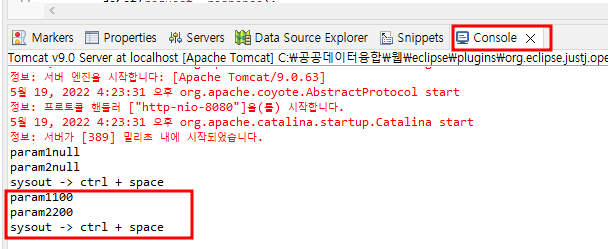 작성후 이렇게 파라미터로 넣어줘야 아래 콘솔창에 뜸