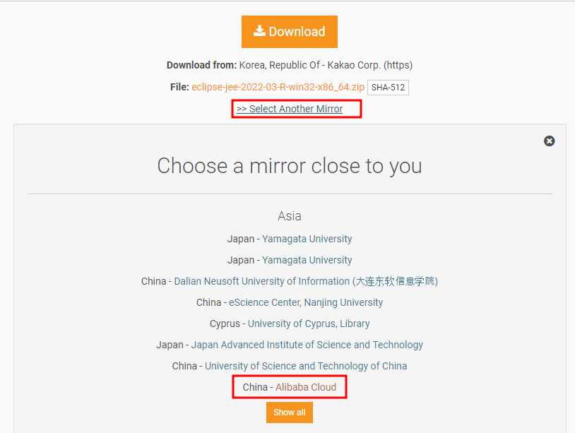 미러에서 중국버전으로 다운받음, 왜냐면은 위에 다운로드는 느리니까!ㅋㅋ