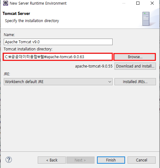 톰캠 설치된 폴더 찾아서 연결