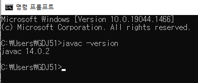 C:\Program Files\Java\jdk-14.0.2\bin 이 디렉토리 안 들어오면 javac -version 이런 명령어 실행이 안되,