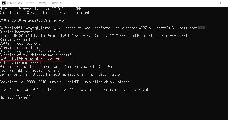 mysql_install_db --datadir=C:\mariadb\data --service=mariaDBZip --port=3306 --password=