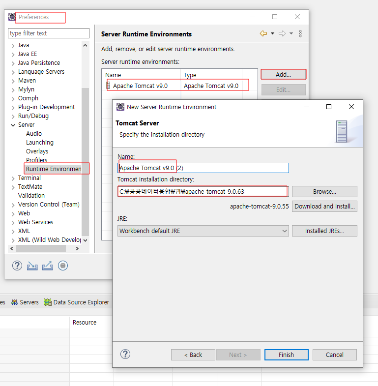 때로는 워크스페이스 바꿔서 톰캣 서버를 다른 버전으로 연결하기도 한다고 함