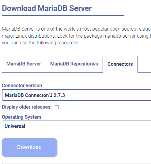 https://mariadb.org/download/?t=connector&p=connector-java&r=2.7.3&os=universal