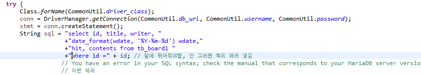 rs = stmt.executeQuery(sql); // DB에서 데이터를 가져온다.