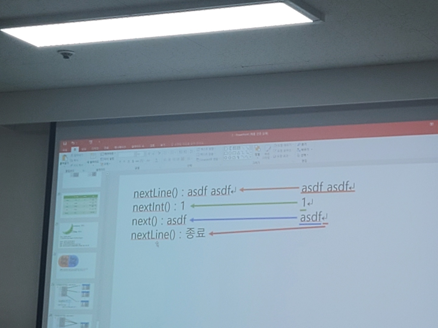 next() : asdf(뒤에 공백이있음) asdf