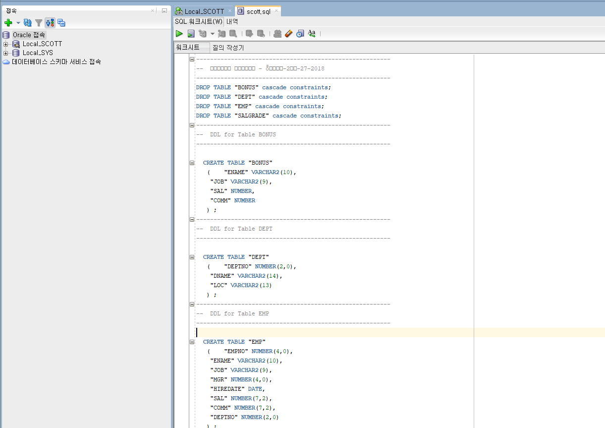 SCOTT 데이터로 연습할거기 떄문에 이름 SCOTT