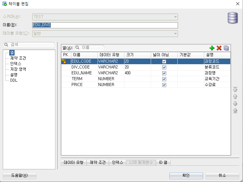 INSERT INTO EDU_DIVS(EDU_CODE, DIV_CODE , EDU_NAME, TERM, PRICE)