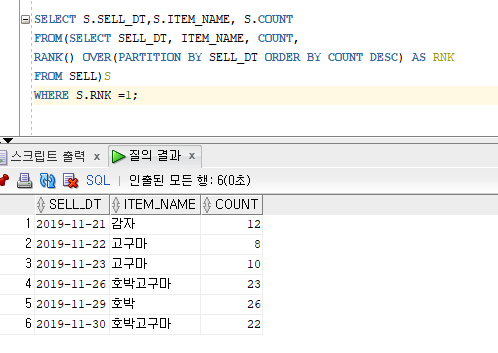 FROM(SELECT SELL_DT, ITEM_NAME, COUNT,