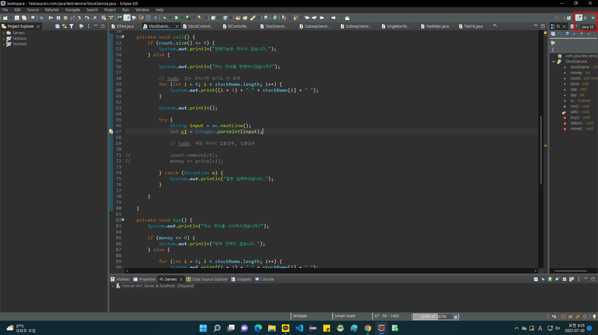 오른쪽 끝 javaEE로 변경해주고,