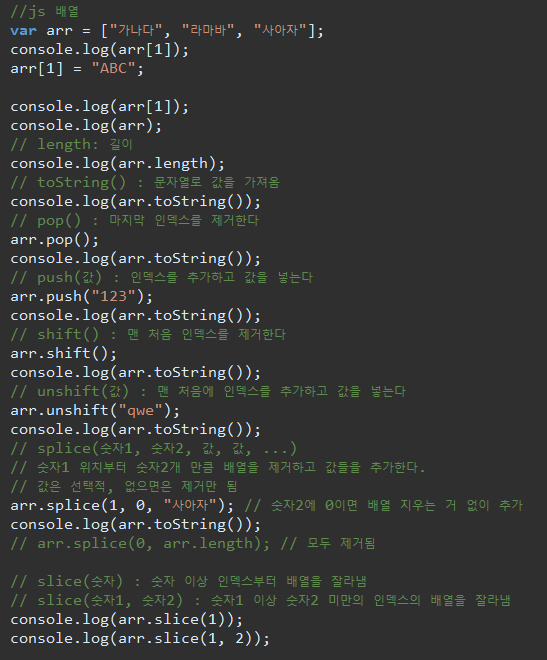 - 나는 배열이랑 오브젝트도 아직 확실히 모르는게, 아까 배열 배우기전에 뭐 좀 볼라구 배열 선언하는데