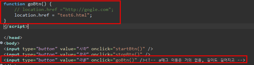 <input type="button" value="이동" onclick="goBtn()" /><!-- a태그 이동은 거의 없음, 길이도 길어지고 -->
